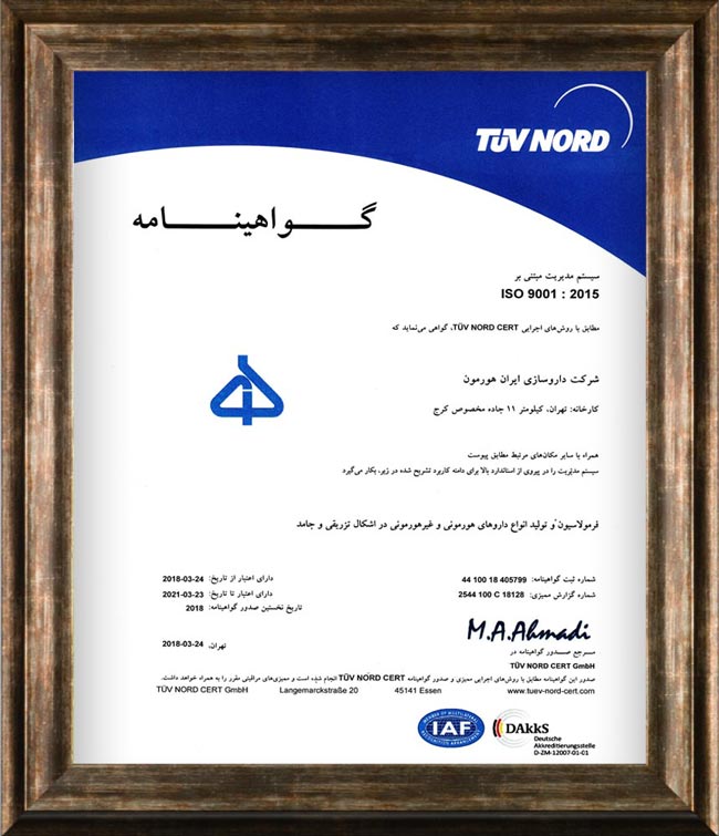 ايران هورمون يكي از مهمترين كارخانجات توليدكننده داروهاي هورموني از قبيل داروهاي موثر بر غده تيروئيد،داروهاي ضد سرطان با منشاء هورمونی، هورمونهاي جنسي، داروهاي موثر در نازائي و همچنین داروهای قلبی و عروقی، داروهای موثر بر فشارخون،آنتی دیابتیک ها، کورتيكوستروئيدها، شل کننده های عضلات و ویتامین ها در جمهوري اسلامي ايران مي باشد. از آنجائيكه كنترل هاي كيفي دقيق و گوناگون در زمينه فرآورده هاي داروئي از اركان بسيار مهم توليد اين محصولات مي باشد، لذا این شرکت با بکارگیری پرسنل مجرب و متخصص و ایجاد واحد تضمین کیفیت، بابهره گیری از ماشین آلات و تجهیزات پیشرفته دارویی اين امر مهم محقق گردیده است. كنترل هاي مرتبط از مواد اوليه شروع و تا خاتمه توليد آنها بعلاوه نظرسنجی از مشتریان پس از عرضه در بازار در رابطه با کیفیت تولیدات ادامه مي يابد. از بارزترين امتيازات شركت ايران هورمون، وجود آزمايشگاه كنترل كيفي و واحد تحقيقات و نوآوري كارخانه ميباشد . در حال حاضر لابراتوار كنترل كيفي اين كارخانه موفق به اخذ گواهينامه از وزارت بهداشت و درمان و آموزش پزشكي به عنوان آزمايشگاه مرجع در آزمايشات مختلف و مطالعات بيواكي والانسي با همكاري دانشگاه علوم پزشكي شهید بهشتی گرديده است.